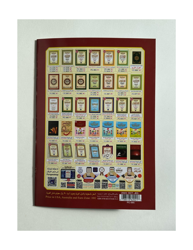 Al Qaida Nooraniah With QR Code is a beautifully printed, full-colour Arabic Qaidah using the Uthmani script, enhanced with embedded QR codes on each page. Learners can scan these codes to access online recitation lessons, making this qaidah perfect for beginners who want guided audio support. The layout is organized for clear progression through letters, combined letters, and basic Quranic spelling. This version is widely used in Arab and North African regions, offering a method that’s authentic and modern in its approach.