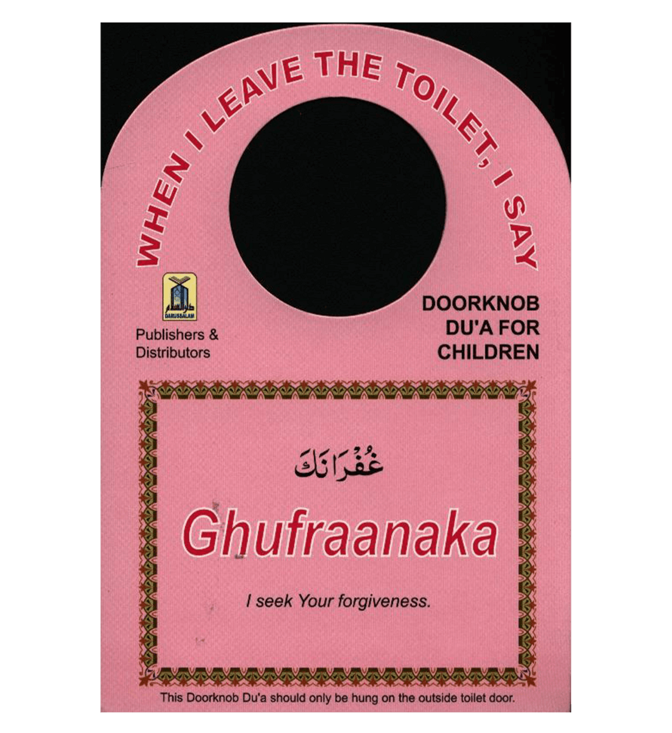 يجب تعليق دعاء مقبض الباب هذا على باب المرحاض الخارجي فقط.