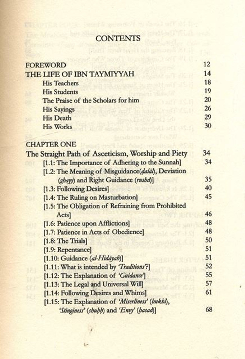 المحتويات المقدمة حياة ابن تيمية أساتذته 12 14 18 طلابه ثناء العلماء عليه 20 أقواله وفاته مؤلفاته الفصل الأول 24HL28 19 26 29 30 الطريق المستقيم للزهد والعبادة والتقوى [1.1: أهمية اتباع السنة] [1.2: معنى الضلال والغى والرشد] 34 tot [1.3: اتباع الشهوات] [1.4: حكم الاستمناء] 33 394 34 35 40 45 [1.5: وجوب الكف عن المحرمات] 46 801 [1.6: الصبر على البلاء] 48 [1.7: الصبر في الطاعات] 48 [1.8: الفتن] 50 381 [1.9: التوبة] [1.10: الهداية] [1.11: ما المقصود بالأحاديث؟] [1.12: شرح الهداية] [1.13: الإرادة الشرعية الكونية] [1.14: اتباع الهوى والهوى] [1.15: شرح البخل والشُبّ والحسد] 51 51 52 55555 57 61 68