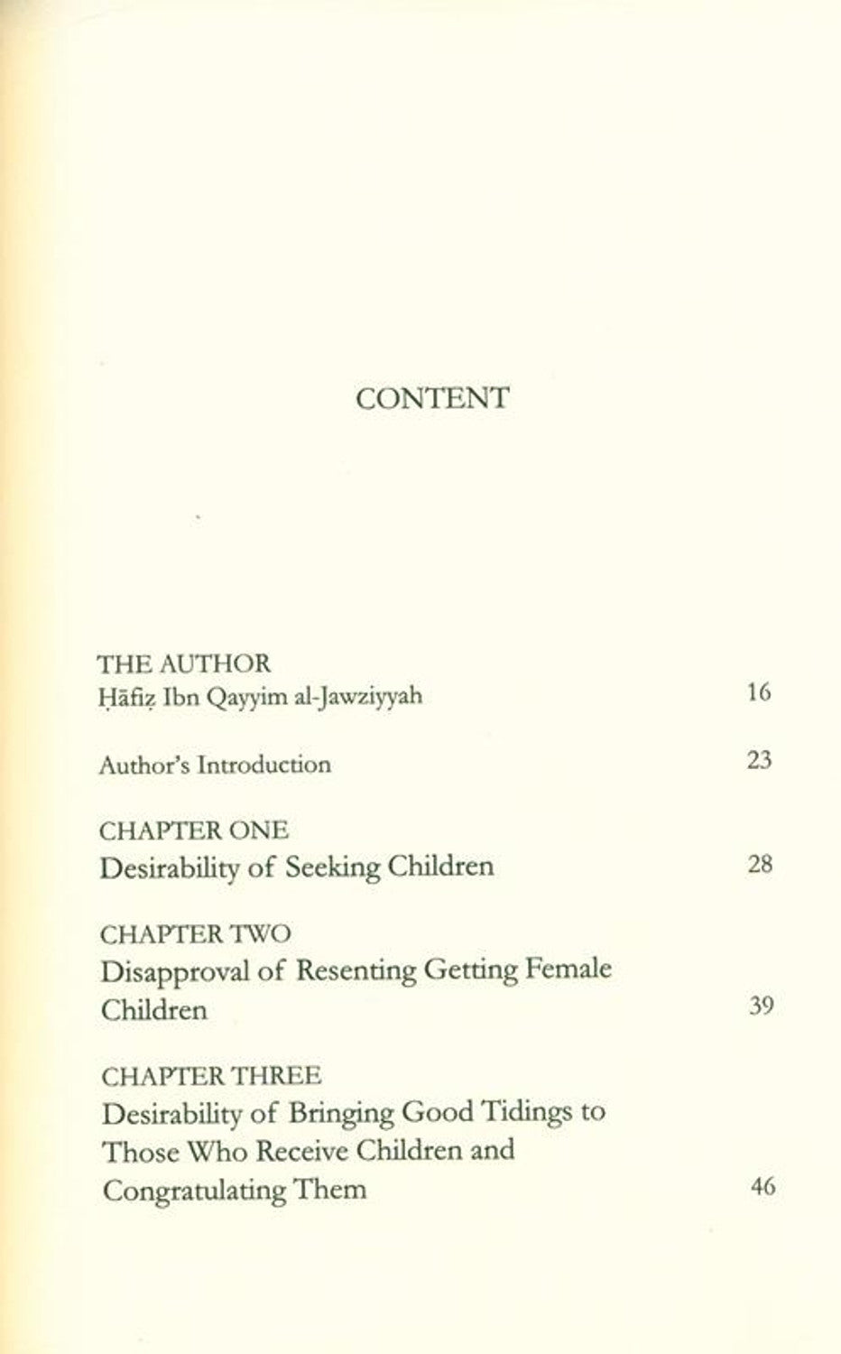 المحتوى المؤلف الحافظ ابن قيم الجوزية مقدمة المؤلف الفصل الأول استحباب طلب الولد الفصل الثاني كراهة إنجاب الإناث الفصل الثالث استحباب تبشير من ولد وتهنئته 16 23 28 39 46