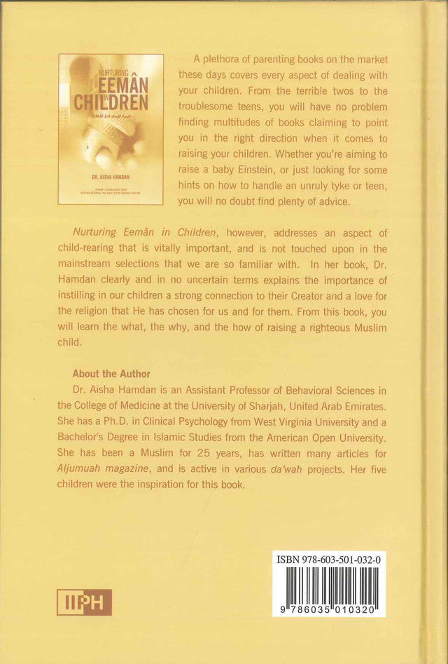 الدكتورة عائشة حمدان أستاذة مساعدة في العلوم السلوكية بكلية الطب بجامعة الشارقة، الإمارات العربية المتحدة. حاصلة على دكتوراه في علم النفس الإكلينيكي من جامعة غرب فرجينيا، وبكالوريوس في الدراسات الإسلامية من الجامعة الأمريكية المفتوحة. وهي مسلمة منذ خمسة وعشرين عامًا، ولها العديد من المقالات في مجلة الجمعة، وناشطة في مشاريع دعوية متنوعة. وقد استلهمت هذا الكتاب من أطفالها الخمسة.