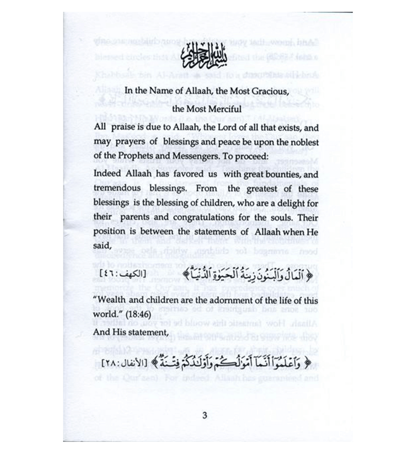 - مثال : "أطفالنا هم مستقبل الأمة، وتربيتهم بتعاليم القرآن الكريم أمر بالغ الأهمية في تشكيل جيل يقدر المعرفة والصلاح والنزاهة الروحية."