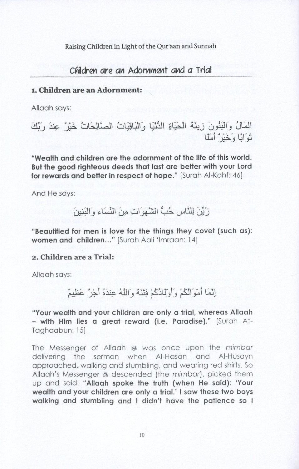 على الرغم من صغر حجمه، يُقدّم هذا الكتاب كنزًا من النصائح والتوجيهات المفيدة في تربية الأبناء في الإسلام، بدءًا من سنّ الرضاعة وحتى سنّ المراهقة. ولذلك، ستجدون في هذه الرسالة ما يُغطّي قضايا الطفل قبل ولادته، وعند ولادته، وخلال شبابه وما قبل المراهقة. يُقدّم المؤلف المادة بأسلوب سهل الفهم، مُستعينًا بالأدلة من القرآن والسنة، بالإضافة إلى اقتراحات وتعليقات شخصية. في ظلّ ازدياد أعداد المسلمين في الغرب، يُعدّ كتابٌ كهذا ضروريًا لمعالجة العديد من القضايا والتساؤلات التي تُطرح بين الأسر التي تُحاول تربية أبنائها تربيةً إسلاميةً سليمةً.