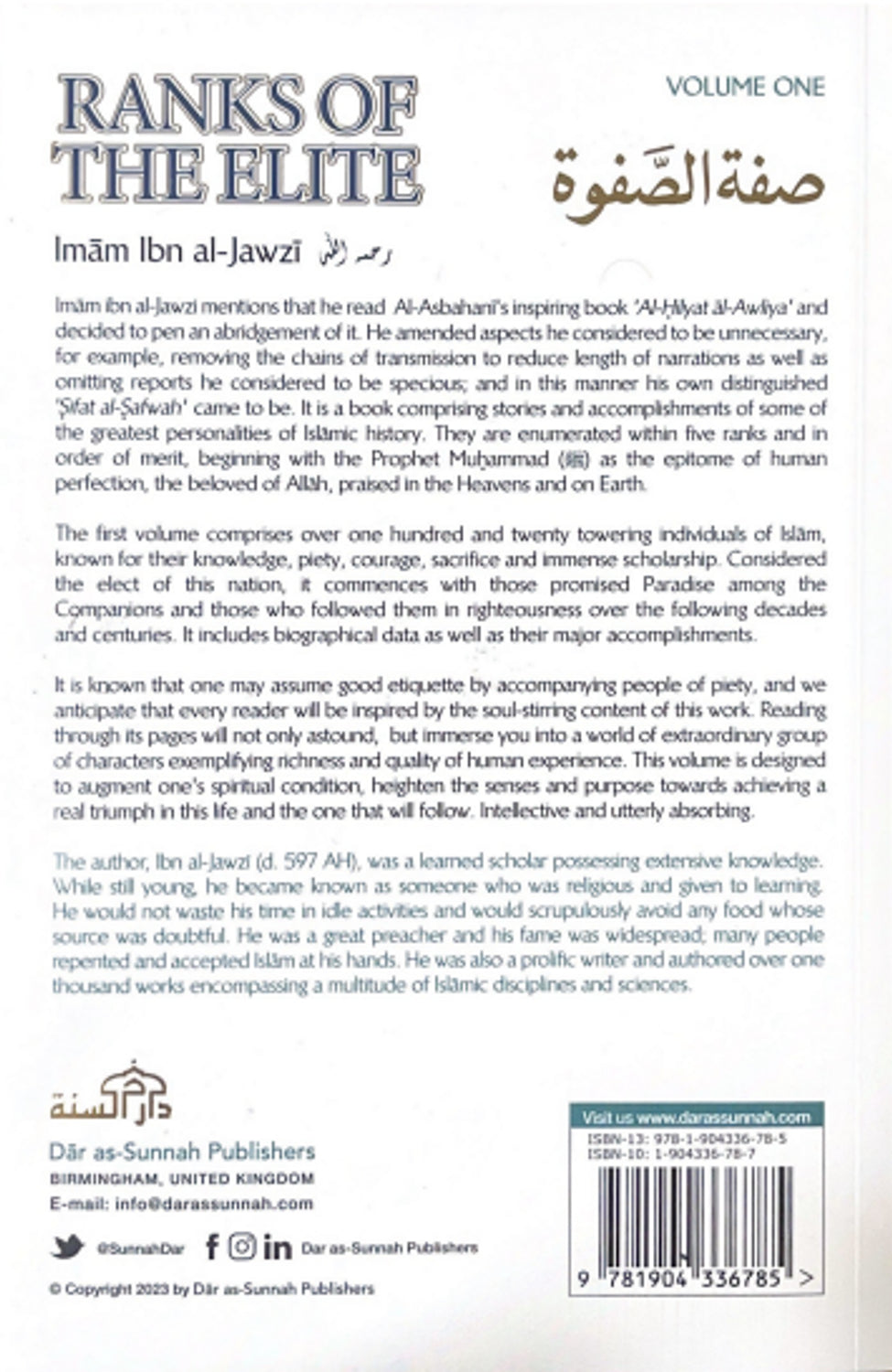 وفقًا للإمام ابن الجوزي، فقد تأثر بكتاب "الحلية الأولياء" المؤثر للأصبهاني وقرر تلخيصه وتحسينه من خلال حذف المعلومات غير الضرورية. وشمل ذلك إزالة سلاسل النقل لتقليل طول الروايات والتقارير التي اعتبرت غير موثوقة. ونتيجة لذلك، وُلد كتابه الشهير "صفة الصفوة". وهو عبارة عن تجميع لقصص وإنجازات بعض أهم الشخصيات في التاريخ الإسلامي. يتم تصنيف هؤلاء الأفراد إلى خمس مراتب، بدءًا من النبي محمد (صلى الله عليه وسلم) باعتباره أعظم إنسان، محبوب من الله ومبجل في كل من السماء والأرض. يحتوي المجلد الأول على أكثر من مائة وعشرين رجلاً بارزًا من رجال الإسلام، مشهورين بعلمهم وتقواهم وشجاعتهم وتضحيتهم ومساهماتهم العلمية الهائلة. هؤلاء الأفراد، الذين يعتبرون