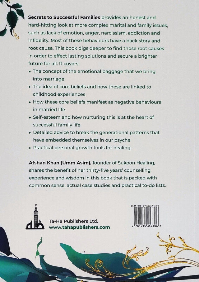 تعرّف على تعقيدات الزواج وديناميكيات الأسرة في كتاب "أسرار الأسر الناجحة". اكتشف الأسباب الكامنة وراء مشاكل شائعة كالانفصال العاطفي، والغضب، والنرجسية، والإدمان، والخيانة الزوجية. تعرّف على كيفية تأثير تجارب الطفولة على معتقداتنا الأساسية وتأثيرها على علاقاتنا. احصل على إرشادات عملية حول تعزيز احترام الذات وكسر دائرة الأنماط المتوارثة من جيل إلى جيل من أجل مستقبل أكثر إشراقًا وصحة.