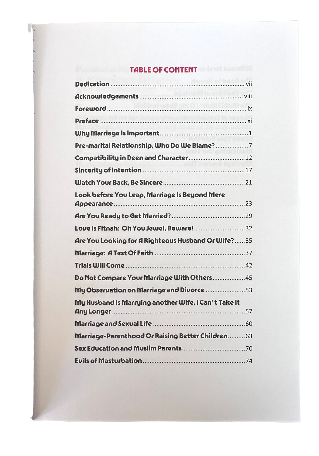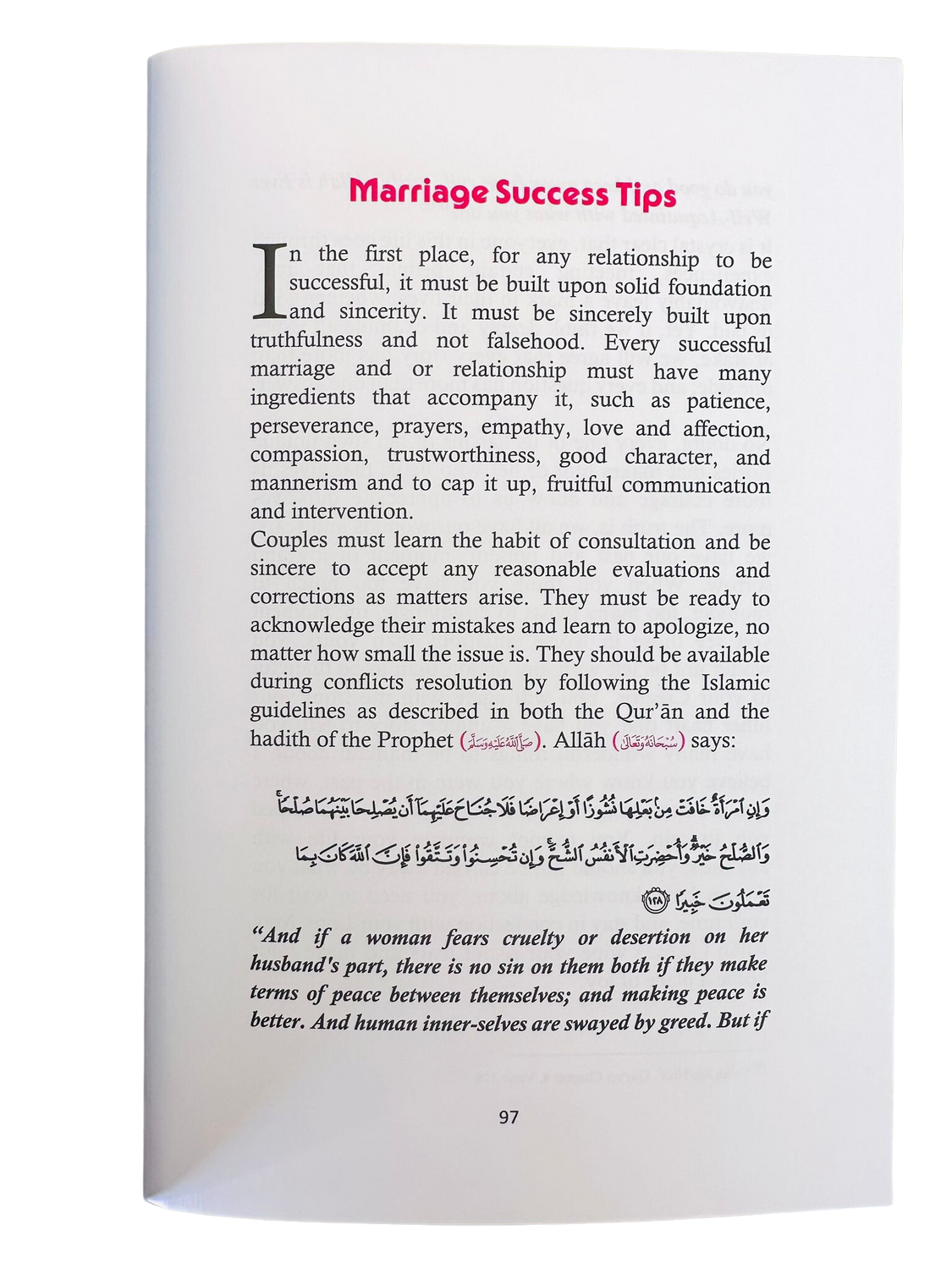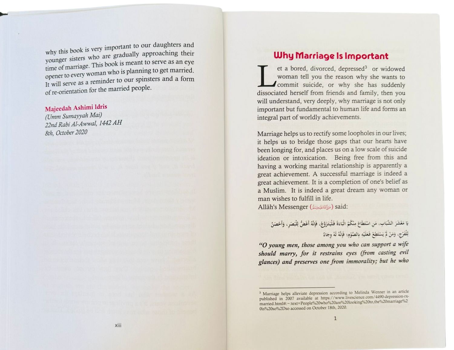 الزواج أمرٌ بالغ الأهمية في الإسلام، لا يُمكن المبالغة في أهميته. إلا أن نقص المعرفة والفهم الصحيحين لشروط الزواج وحقوقه يُؤدي إلى فشل العلاقات. كُتب هذا الكتاب بعناية ليشمل العديد من القضايا الأساسية، بدءًا من الإعداد وحتى الحياة بعد الزواج. بالإضافة إلى ذلك، قدم المؤلف بعض النصائح لنجاح الزواج، والتي سيجدها كل زوجين مُناسبة. وكما لاحظتُ، فإن الكتاب ليس سوى نصيحة قيّمة للشباب والمتزوجين على حدٍ سواء؛ فالجميع بحاجة إليها. جزى الله الكاتب خير الجزاء.