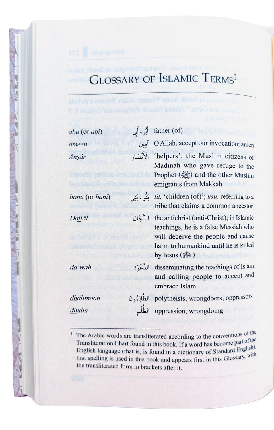 1 Les mots arabes sont translittérés selon les conventions du tableau de translittération figurant dans cet ouvrage. Si un mot est entré dans le langage courant anglais (c’est-à-dire s’il figure dans un dictionnaire d’anglais standard), c’est cette orthographe qui est utilisée dans cet ouvrage et qui apparaît en premier dans ce glossaire.