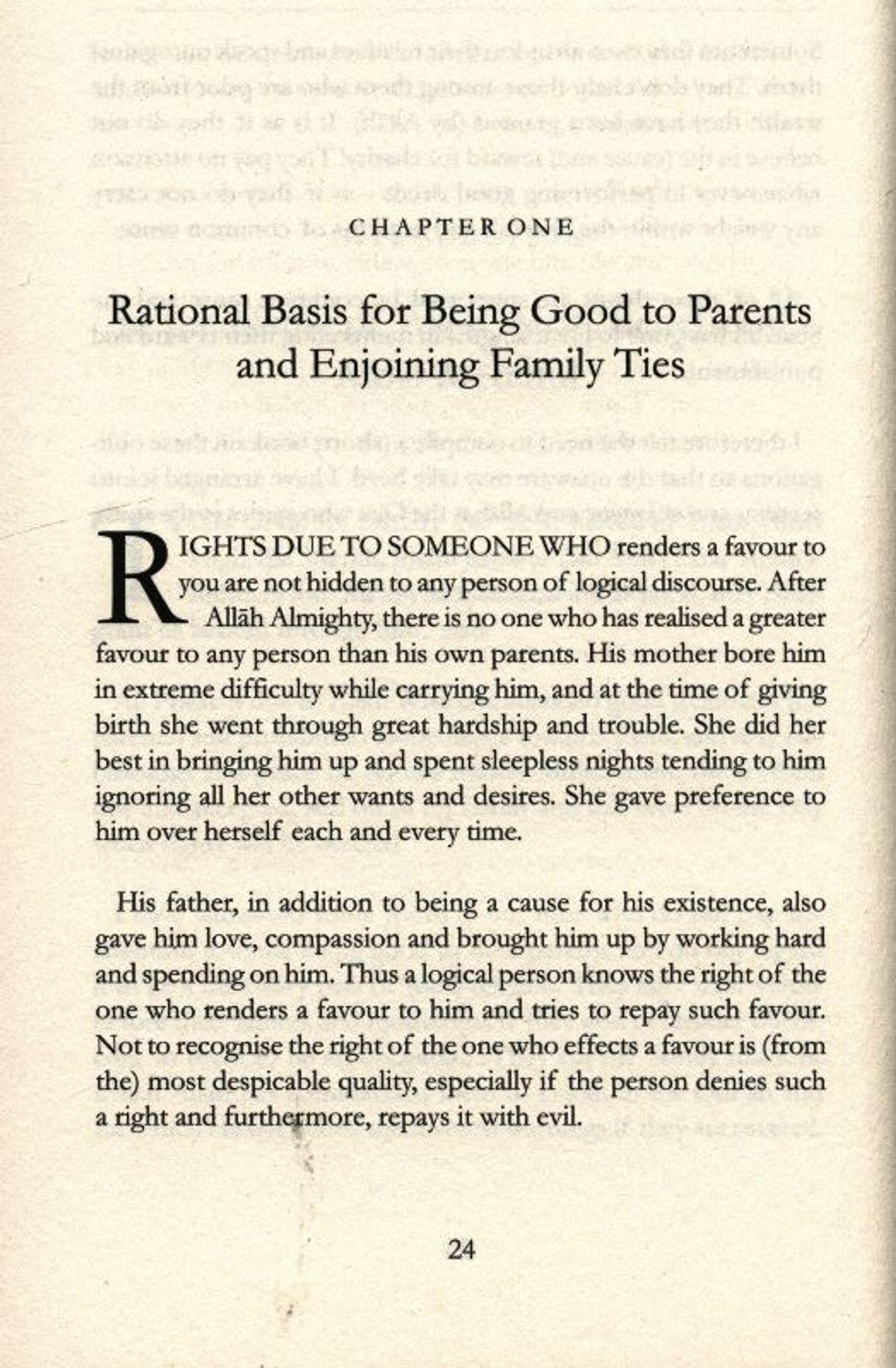 CHAPITRE UN : Fondements rationnels de la bienveillance envers ses parents et de l'importance des liens familiaux. Les droits dus à celui qui nous rend service ne sont pas un secret pour quiconque fait preuve de bon sens. Après Allah le Tout-Puissant, nul n'a rendu un plus grand service à autrui que ses propres parents. Sa mère l'a porté dans d'extrêmes difficultés et a enduré de grandes souffrances lors de l'accouchement. Elle a fait de son mieux pour l'élever, passant des nuits blanches à s'occuper de lui, oubliant tous ses autres besoins et désirs. Elle l'a toujours fait passer avant elle. Son père, en plus d'être à l'origine de son existence, lui a donné amour et compassion, et l'a élevé en travaillant dur et en subvenant à ses besoins. Ainsi, toute personne sensée connaît les droits de celui qui lui rend service et s'efforce de le lui rendre. Ne pas reconnaître le droit de celui qui rend service est une des plus viles qualités, surtout si cette personne nie ce droit et, de surcroît, le lui rend par le mal. 24 24 CHAPITRE UN Fondements rationnels de la bienveillance envers ses parents et de l'importance des liens familiaux Les droits dus à celui qui vous rend service ne sont cachés à personne doté de bon sens. Après Allah le Tout-Puissant, nul n'a rendu un plus grand service à autrui que ses propres parents. Sa mère l'a porté dans d'extrêmes difficultés et, lors de l'accouchement, elle a enduré de grandes souffrances. Elle a fait de son mieux pour l'élever et a passé des nuits blanches à s'occuper de lui, oubliant tous ses autres besoins et désirs. Elle l'a toujours fait passer avant elle. Son père, en plus d'être à l'origine de son existence, lui a donné amour et compassion et l'a élevé en travaillant dur et en subvenant à ses besoins. Ainsi, une personne sensée reconnaît le droit de celui qui lui rend service et s'efforce de le lui rendre. Ne pas reconnaître le droit de celui qui rend service est la pire des qualités, surtout si cette personne nie ce droit et, de surcroît, le lui rend par le mal.