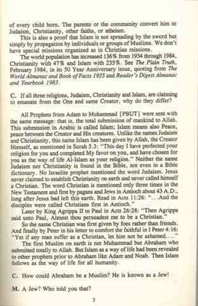 Hasan M. Baagil, a medical doctor and devout Muslim, this concise (40–70 pages depending on edition) work presents the findings of over four years of in-depth research into Christian doctrine and Bible studies