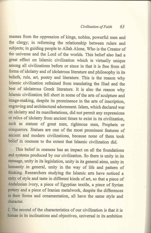 la croyance en l'unité dans la mesure où la civilisation islamique y croyait.