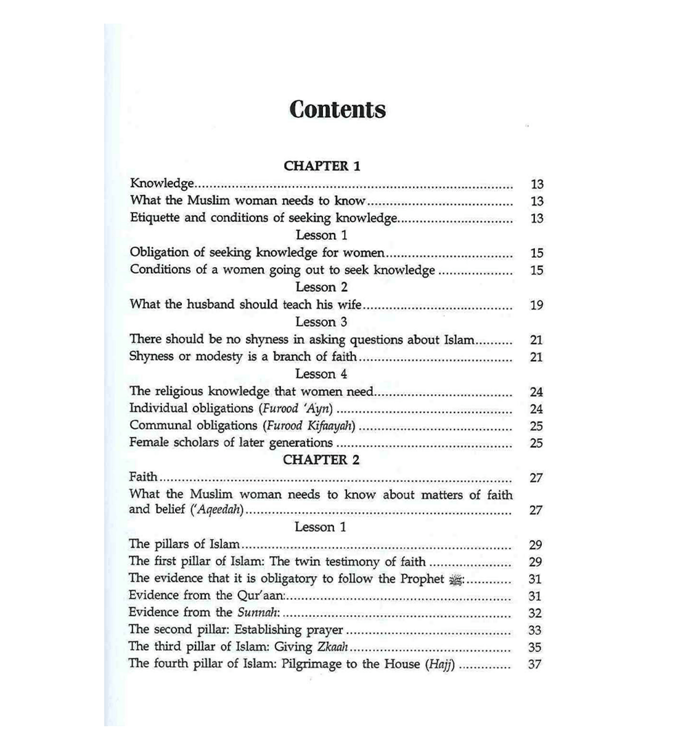 Ce livre est publié dans le même but : fournir aux femmes des connaissances sur les questions de foi, les actes de culte, les détails de la purification, les problèmes du mariage et du divorce, ainsi que sur d'autres questions importantes qui concernent les femmes.
