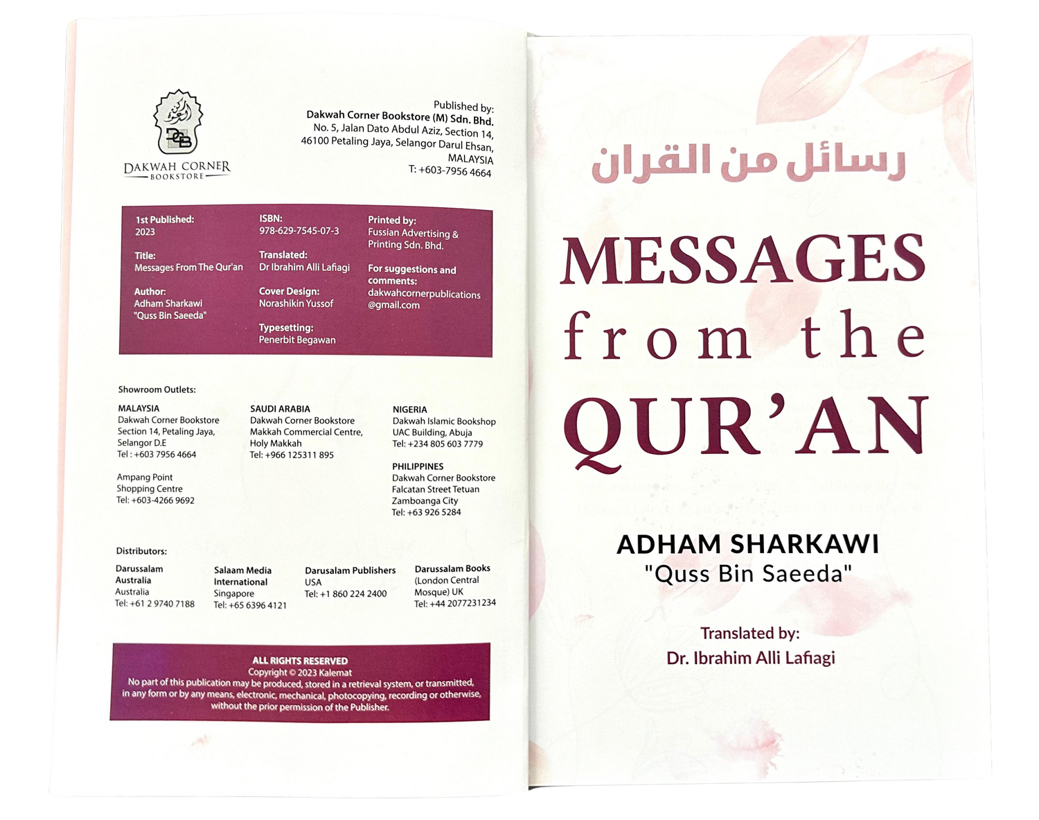 رسائل من القران MESSAGES du CORAN ADHAM SHARKAWI "Quss Bin Saeeda" LIBRAIRIE DE COIN DAKWAH