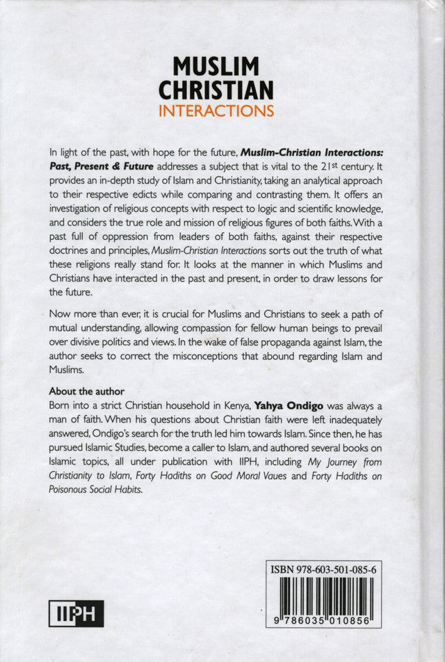 À la lumière du passé, et avec espoir pour l'avenir, *Interactions islamo-chrétiennes : Passé, Présent et Futur* aborde un sujet essentiel du XXIe siècle. Cet ouvrage propose une étude approfondie de l'islam et du christianisme, en analysant leurs préceptes respectifs et en les comparant. Il examine les concepts religieux à l'aune de la logique et des connaissances scientifiques, et s'interroge sur le rôle et la mission véritables des figures religieuses des deux confessions. Face à un passé marqué par l'oppression exercée par les chefs religieux des deux religions, en violation de leurs doctrines et principes respectifs, *Interactions islamo-chrétiennes* met en lumière la véritable nature de ces religions. Il analyse les interactions passées et présentes entre musulmans et chrétiens afin d'en tirer des enseignements pour l'avenir.