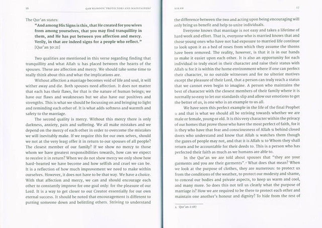 Le Coran déclare : « Et parmi Ses signes, Il a créé pour vous des épouses issues de vous-mêmes, afin que vous trouviez auprès d’elles la tranquillité, et Il a mis entre vous l’affection et la miséricorde. Il y a certes en cela des signes pour des gens qui réfléchissent. » [Coran 30:21]