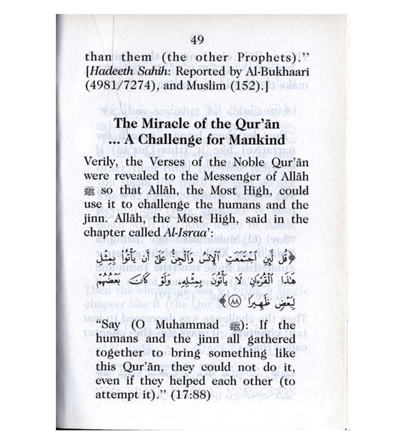 afin qu'Allah, le Très-Haut, puisse s'en servir pour défier les humains et les djinns. Allah, le Très-Haut, dit dans la sourate Al-Isra :
