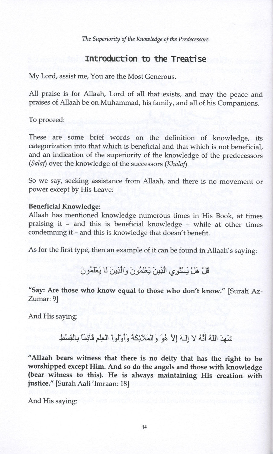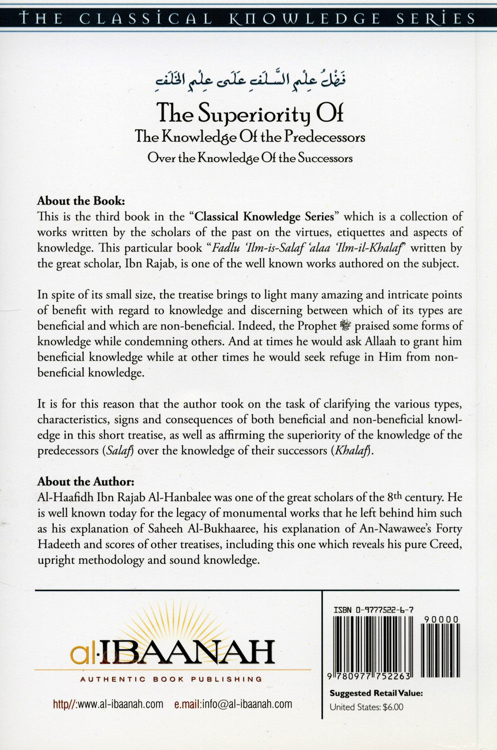 Voici le troisième ouvrage de la série « Savoir classique », un recueil d'écrits d'érudits du passé sur les vertus, les règles et les aspects du savoir. Ce livre, écrit par le grand savant Al-Hafidh Ibn Rajab, est l'un des ouvrages les plus connus sur le sujet. Malgré sa brièveté, ce traité met en lumière de nombreux points remarquables et subtils concernant les bienfaits du savoir et le discernement entre les différentes formes de connaissance, bénéfiques et néfastes. En effet, le Prophète (que la paix et les bénédictions soient sur lui) a loué certaines formes de savoir tout en en condamnant d'autres. Tantôt il implorait Allah de lui accorder un savoir bénéfique, tantôt il cherchait refuge auprès de Lui contre le savoir néfaste. C'est pourquoi l'auteur s'est attaché à clarifier, dans ce court traité, les différents types, caractéristiques, signes et conséquences du savoir bénéfique et du savoir néfaste, tout en affirmant la supériorité du savoir des prédécesseurs (Salaf) sur celui de leurs successeurs.
