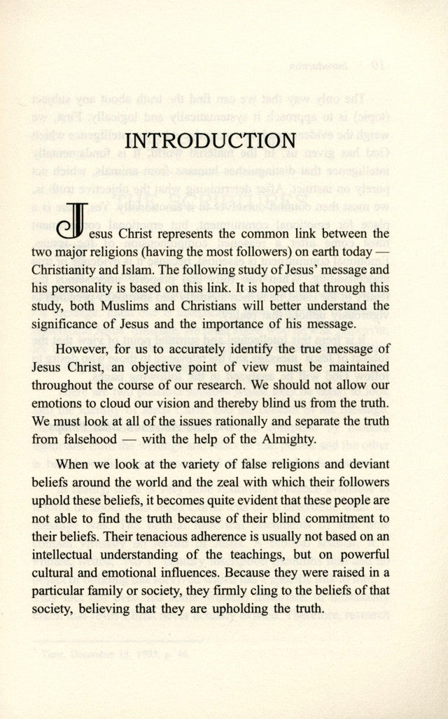 Jésus-Christ représente le lien commun entre les deux principales religions (celles qui comptent le plus grand nombre de fidèles) sur Terre aujourd'hui : le christianisme et l'islam. L'étude qui suit, consacrée au message et à la personnalité de Jésus, s'appuie sur ce lien. Nous espérons que, grâce à cette étude, musulmans et chrétiens comprendront mieux la signification de Jésus et l'importance de son message.