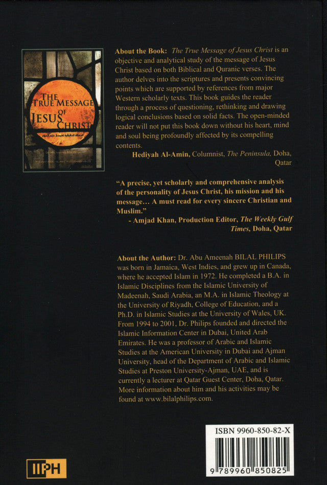 Le Dr Bilal Philips rassemble les écrits d'éminents érudits des traditions chrétienne et islamique sur la personne et le message de Jésus-Christ (que la paix soit sur lui). Le Dr Philips écrit : « Jésus-Christ représente le lien commun entre les deux principales religions (celles qui comptent le plus de fidèles) aujourd'hui : le christianisme et l'islam. Cette étude du message et de la personnalité de Jésus s'appuie sur ce lien. Nous espérons que *Le Véritable Message de Jésus-Christ* aidera les musulmans comme les chrétiens à mieux comprendre la signification de Jésus et l'importance de son message. Cet ouvrage vise à présenter une vision objective de Jésus-Christ et à éviter les connotations culturelles et émotionnelles susceptibles d'obscurcir notre compréhension. »