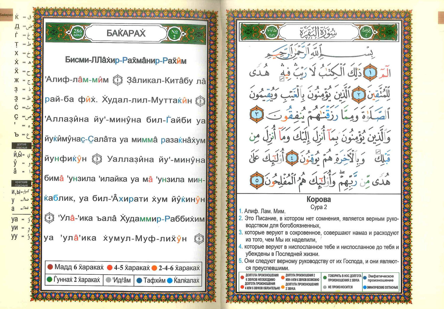 • Транслитерация: Для тех, кто не знаком с арабским письмом, транслитерация даёт возможность правильно произносить арабский текст, следуя русским буквам.