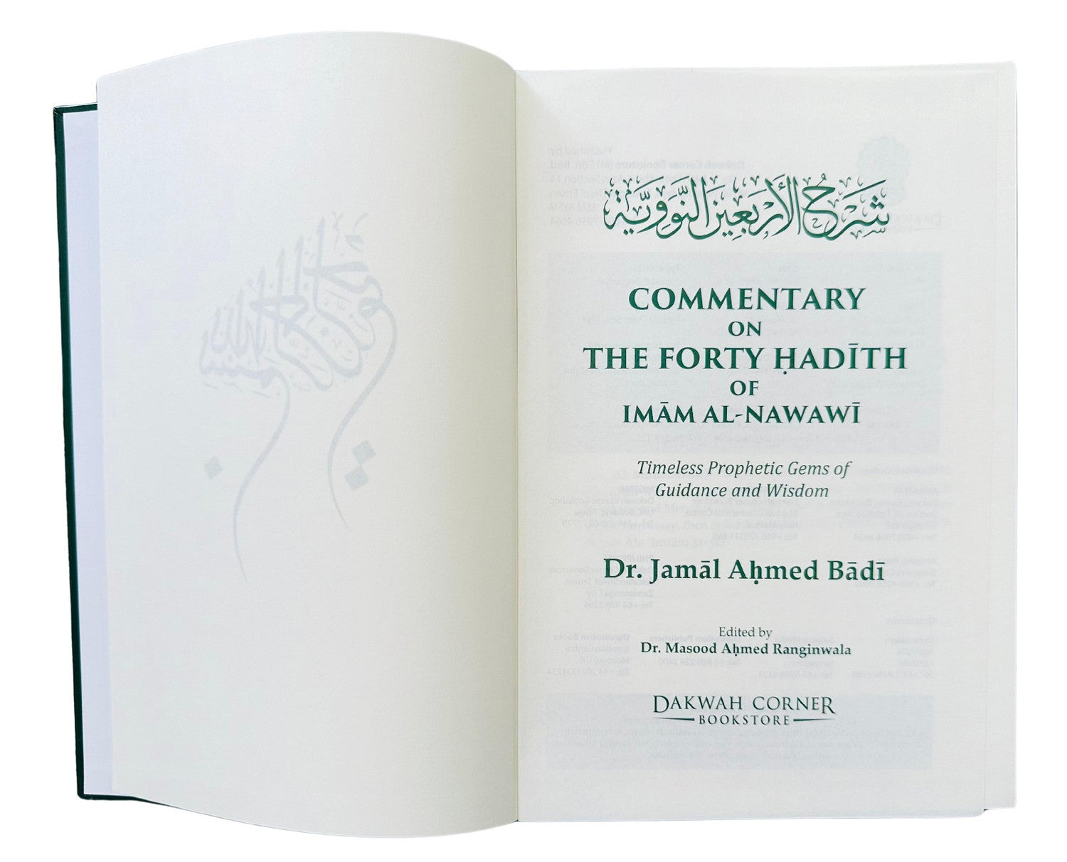 AIRYA TAM es شرح الأربعين النووية COMMENTARY ON THE FORTY HADITH OF IMAM AL-NAWAWI Timeless Prophetic Gems of w Guidance and Wisdom Dr. Jamal Aḥmed Bādī VIP sposodme Edited by droom Dr. Masood Ahmed Ranginwala DAKWAH CORNER BOOKSTORE