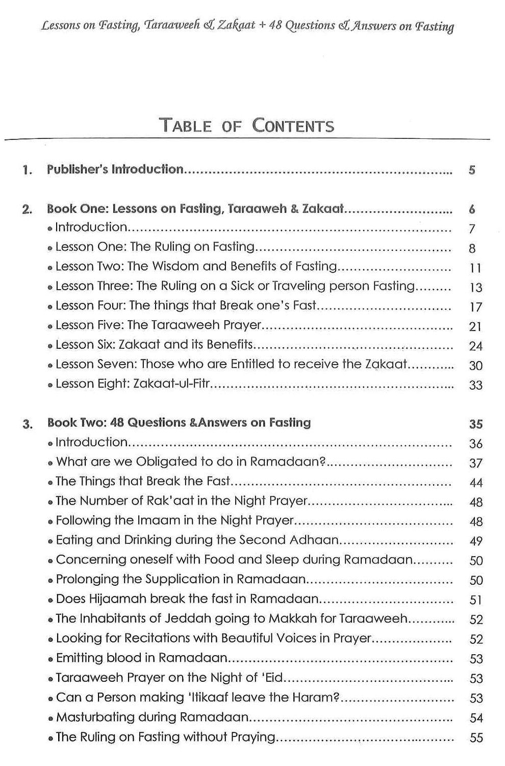 This book is a compilation of two treatises from Imaam Muhammad Bin saalih Al-Uthaimeen, may Allah have mercy on him, both on the subject of fasting and ramadaan. The First book, though smal in size contains numerous beneficial points. It is divided up into eight sections, which were designed to serve as lessons on distinct topics commonly talked about during the month of Ramadaan.