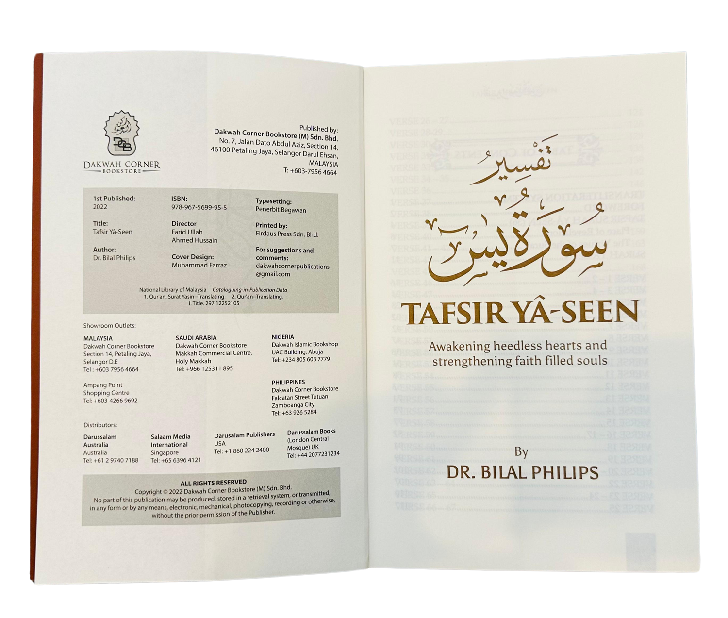 Through TAFSIR YA-SEEN, Dr. Bilal Philips offers valuable insights on how to incorporate the lessons of this Surah into daily life, helping readers strengthen their connection with Allah and live in accordance with His guidance. Whether for personal reflection or group study, this book serves as an essential resource for anyone looking to deepen their understanding of Surah Ya-Seen and its relevance in modern times.